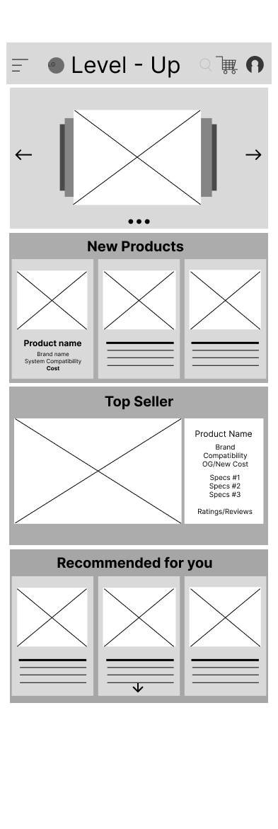 “lvl up!” is an ecommerce website/app designed for gamers to purchase all of their equipment in one place. The age of the typical user ranges between 18 - 35 from casual to pro-level experiences. “lvl up!” is the site for gamers by gamers with gamers’ needs at the forefront!